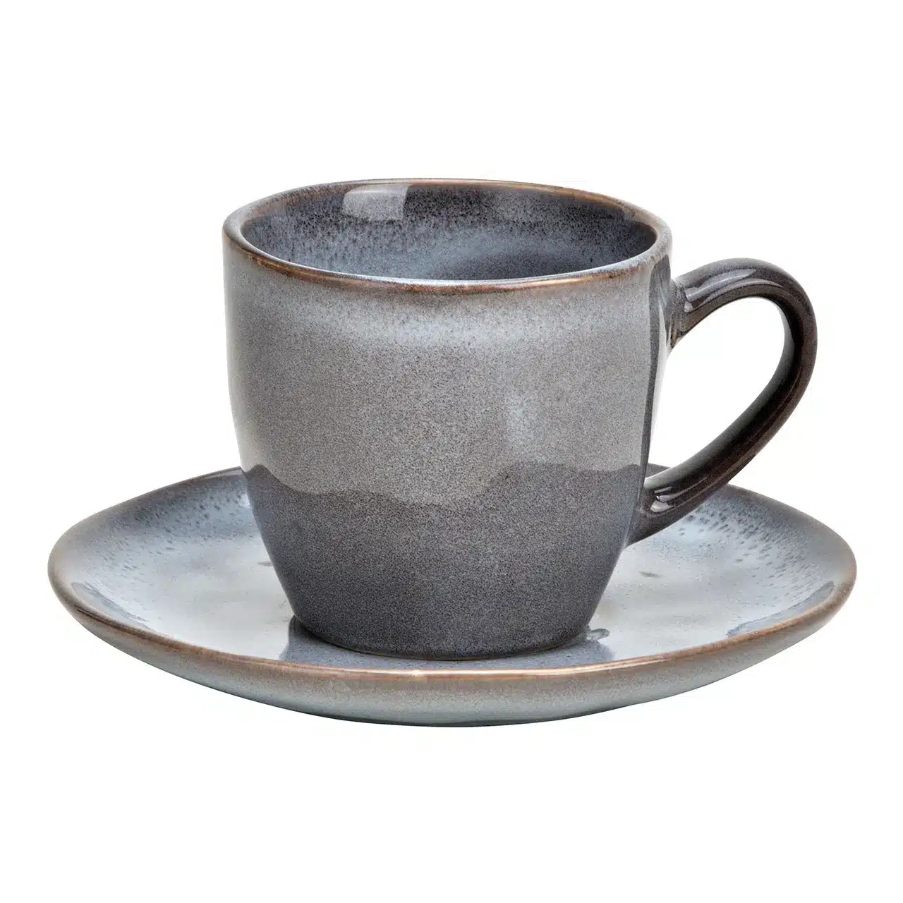 Espressotasse 10x7x7cm 173ml mit Untertasse 13cm aus Steingut Grau 2er Set, (B/H/T) 13x8x13cm